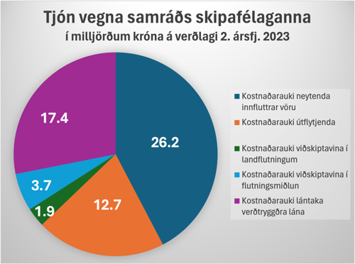 Samráðsbrotum skipafélaganna er lýst ýtarlega í ákvörðun Samkeppniseftirlitsins (SE) í máli Samskipa sem var birt í lok ágúst sl. Að mati Analytica leiddi samráðið til þess að vísitala neysluverðs hækkaði um 0,7% umfram það sem gera hefði mátt ráð fyrir ef gjaldskrár skipafélaganna hefðu haldist óbreyttar að raungildi. Áætlað er að kostnaðarauki fyrirtækja í útflutningi hafi numið um 12,7 milljörðum, viðskiptavina í flutningsmiðlun um 3,7 milljörðum og viðskiptavina í landflutningum um 1,9 milljörðum. Þessar tölur eru á verðlagi 2. ársfjórðungs síðasta árs, um það leyti sem SE birti ákvörðun sína.