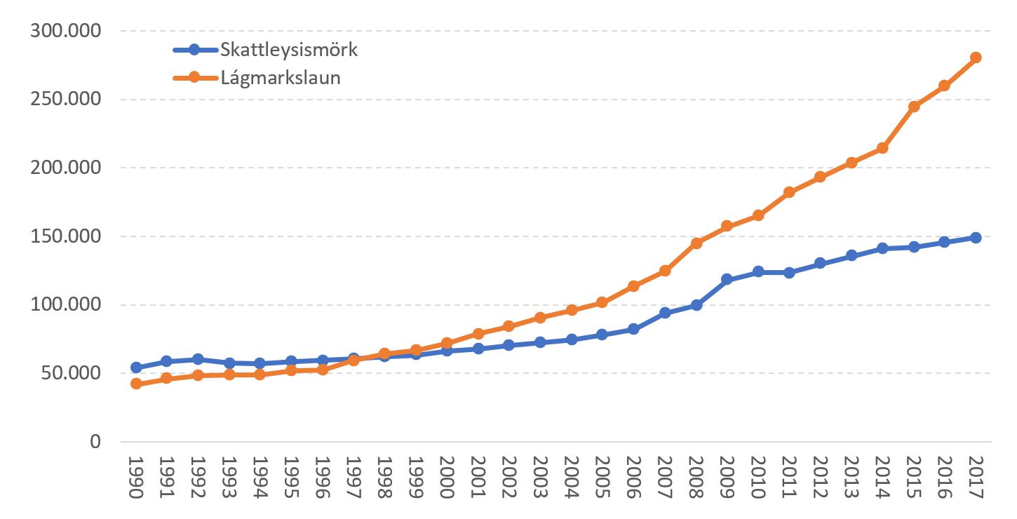 Þróun skattleysismarka og lágmarkslauna frá 1990 til 2017